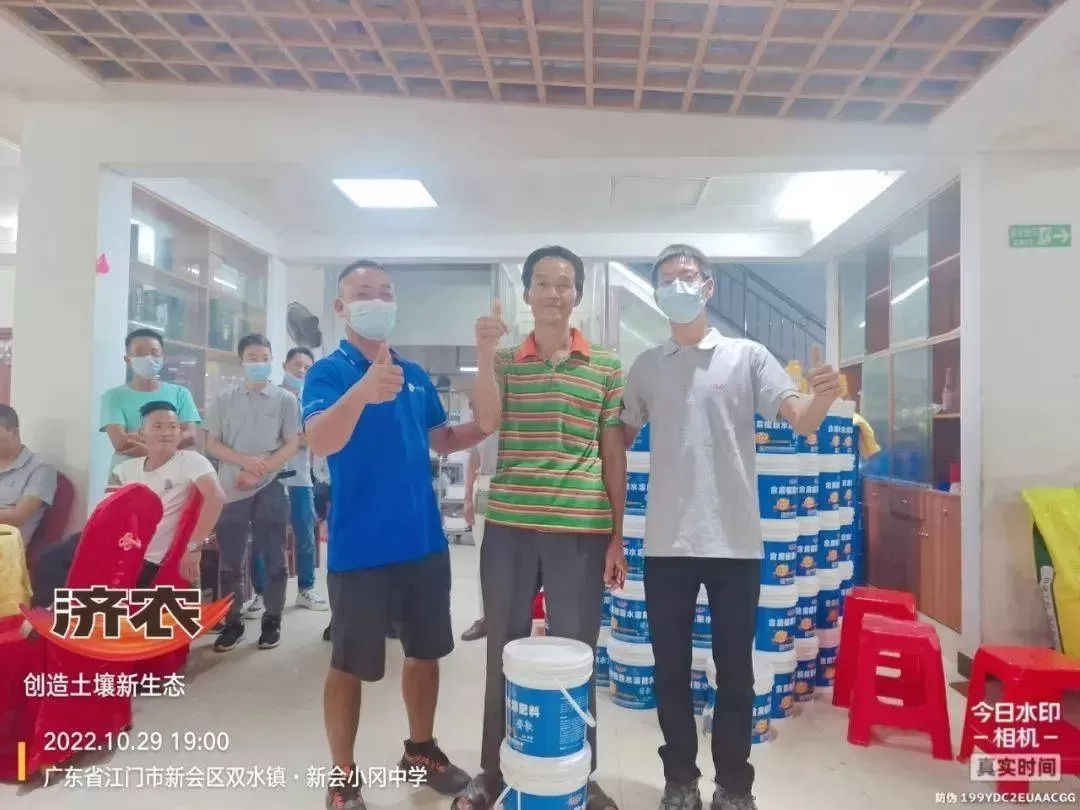 今年岭南天气干旱,台风过境后很多果园的溃疡病严重,出现了大面积黄化现象。但是新会区罗坑镇的一个果园,老板每次浇水都带济农乐土,一路走来只有她家果园没有黄化,叶片更绿、开展不蜷曲,溃疡病也较其他家少很多,最重要的是果实品质好,冬后柑的收购价都比别人的高。