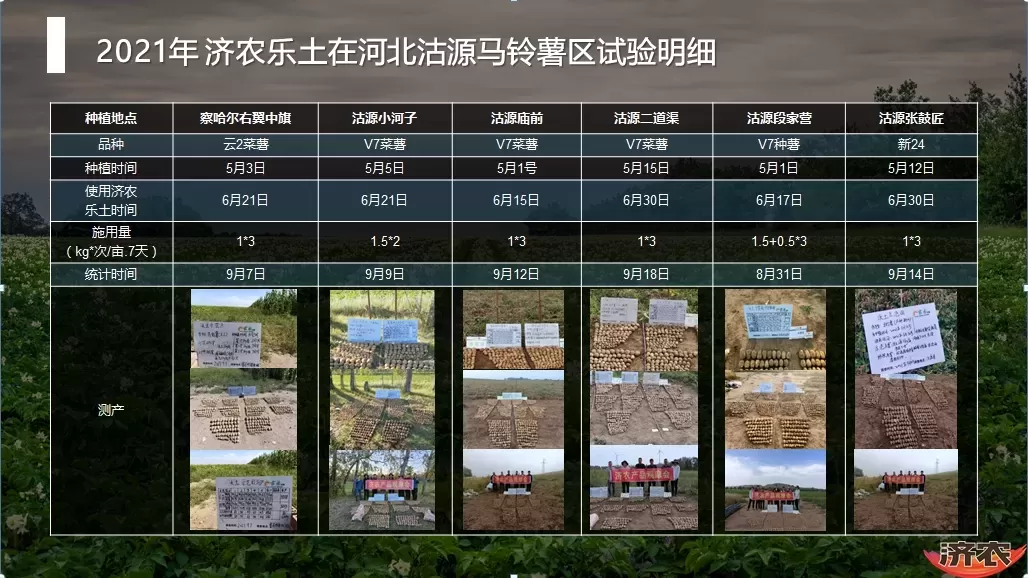 After using Jinong Letu, the average yield of potatoes per mu increased by 349 kilograms, and the yield of commercial potatoes increased by 757 kilograms. The rate of commercial potatoes increased from 68.4% of the control to 81.4%, an increase of 13%.