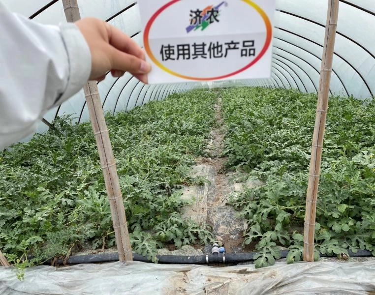 Watermelons that have been used twice in Jinong Letu jump quickly, have more new shoots, and have a clear advantage in growth, indicating that Jinong Letu has a long fertilizer effect period.