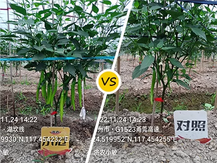 The yield and quality of chili peppers using Jinong products are completely crushed, surpassing those without Jinong products.