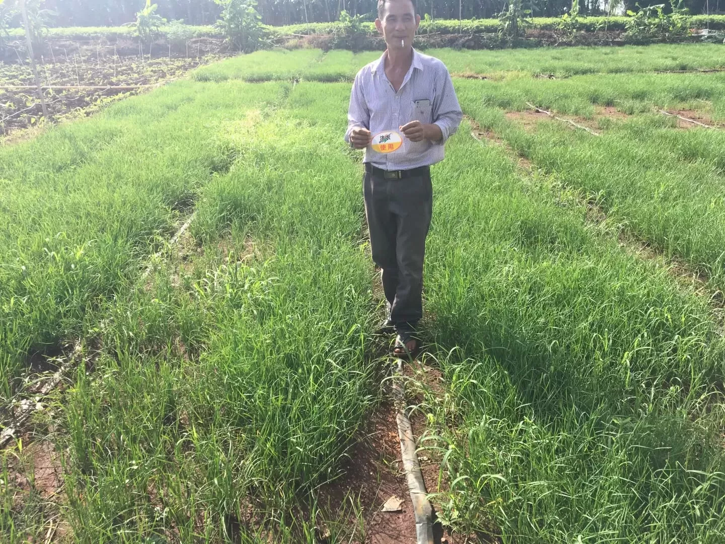 Using other products, the dried chives are sharp, withered yellow, and sparse; Using 2L/mu of Jinong Letu, chives have no yellow leaves or dry tips, grow densely, and have high commercial value.