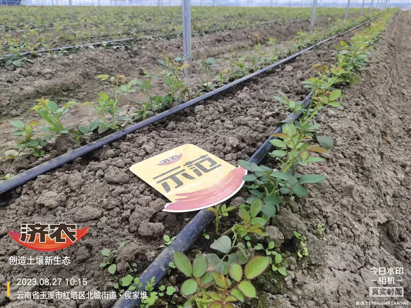 使用济农双收臻齐的玫瑰幼苗根群大,白根多,地里没有死苗的情况,新梢长势良好。
